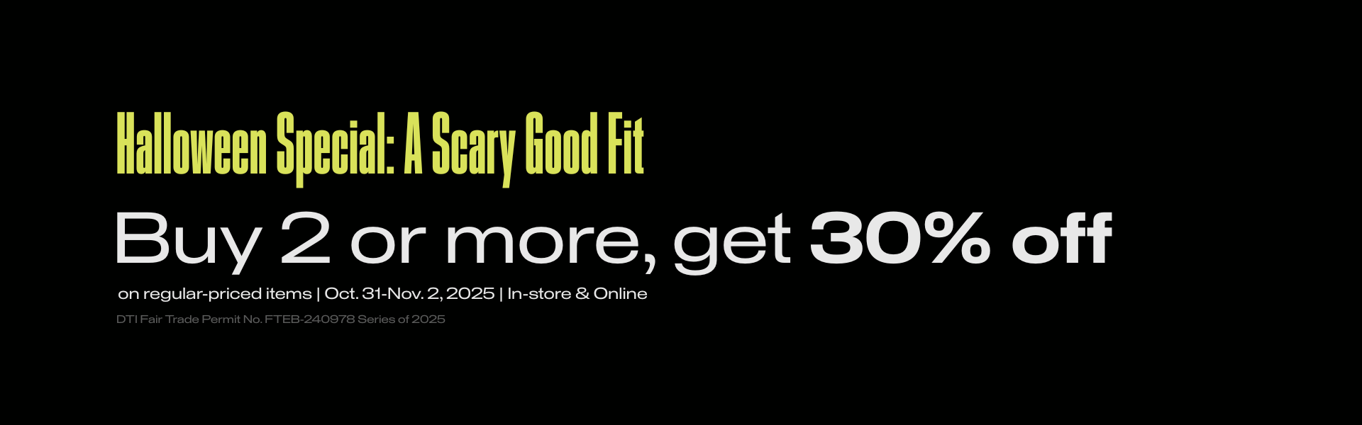 Buy 2 or more get extra 30% off. Applicable on Regular-priced items. Discount is applied at checkout. Promo runs from Oct. 31- Nov 2, 2025 in-store and online. DTI Fair Trade Permit No. FTEB-240978 Series of 2025